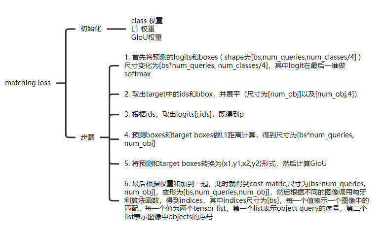 前提:假设我们知道DETR有N个object queries(N=100),可以预测得到100个边界框,而我们的GT物体也有N个(可能真实的GT只有几个,但最后被填充到N个,填充的类别即为"no object")。