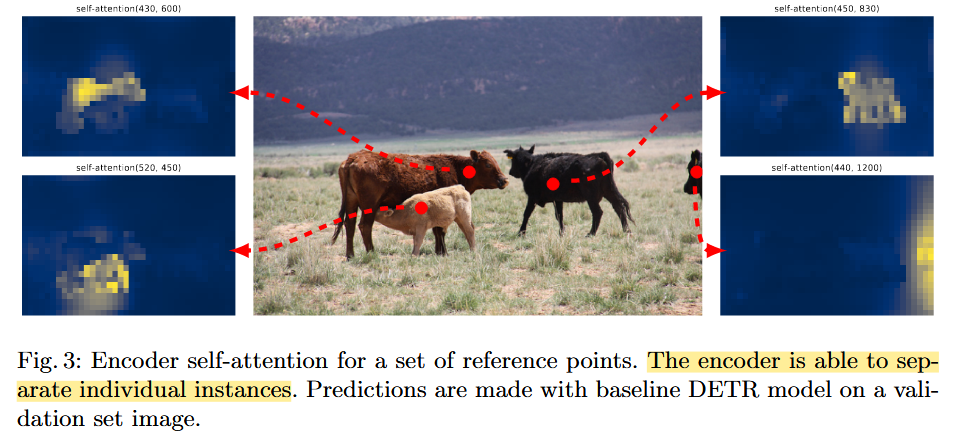 - 只关注encoder最后一层,关注几个点的位置,可见encoder似乎已经可以区分出不同的instances