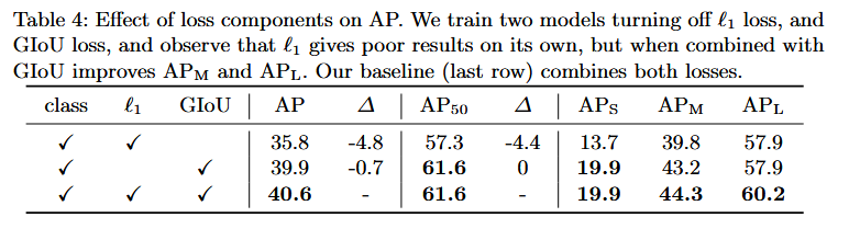还会去计算辅助loss,可以提高训练速度以及稳定性。从源码中可以看到,CE Loss:L1 Loss: GIoU Loss = 1:5:2
